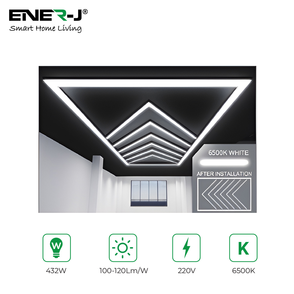 Illuminate your space with our 432W Designer Ceiling Lights, featuring a unique 6 arrow design and a stylish border. Perfect for various settings, these lights offer bright and even illumination, high energy efficiency, and a modern aesthetic.
