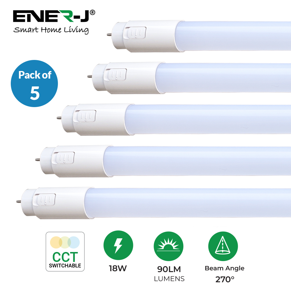 T8 LED Nano Plastic Tube 120cms 18W CCT Switchable Pack of 5 Units