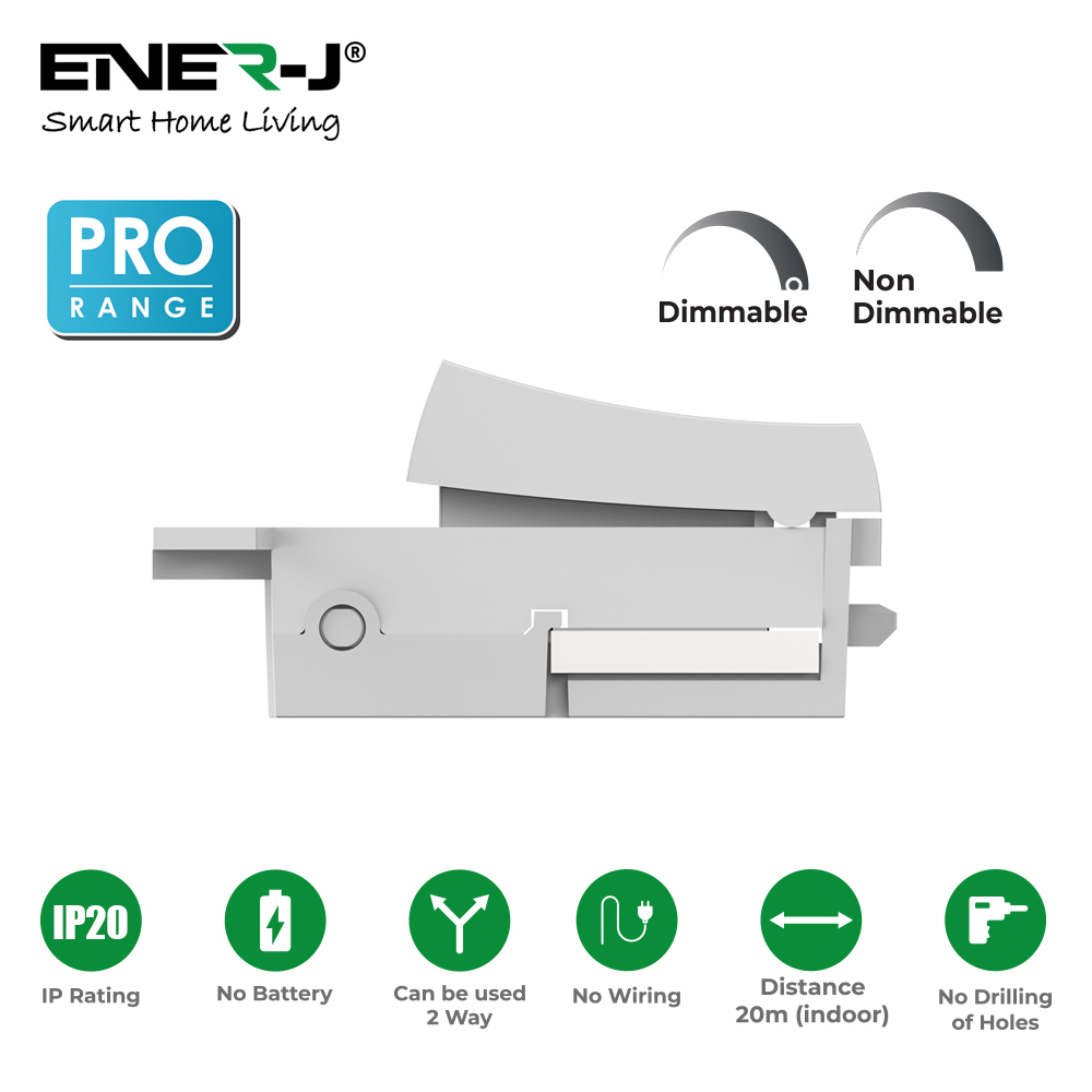 Upgrade your lighting control with the innovative ENER-J 1 Gang Wireless Kinetic Switch in PRO Series. No wiring, no batteries, and no drilling required. This energy-saving wireless switch is designed to fit seamlessly into your existing plate. Pair it with a compatible receiver module (not included) via RF433Mhz and wirelessly control your lighting circuits. Enjoy the convenience of a wireless switch without the hassle of traditional installation. Compatible with MK grid plus system and can be installed into plates.